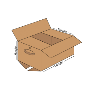 Het voordeel van een Verhuisdoos Opmaat is dat je zelf het formaat kan bepalen b.v. 600x400x400 mm of 500x350x350 mm enz.